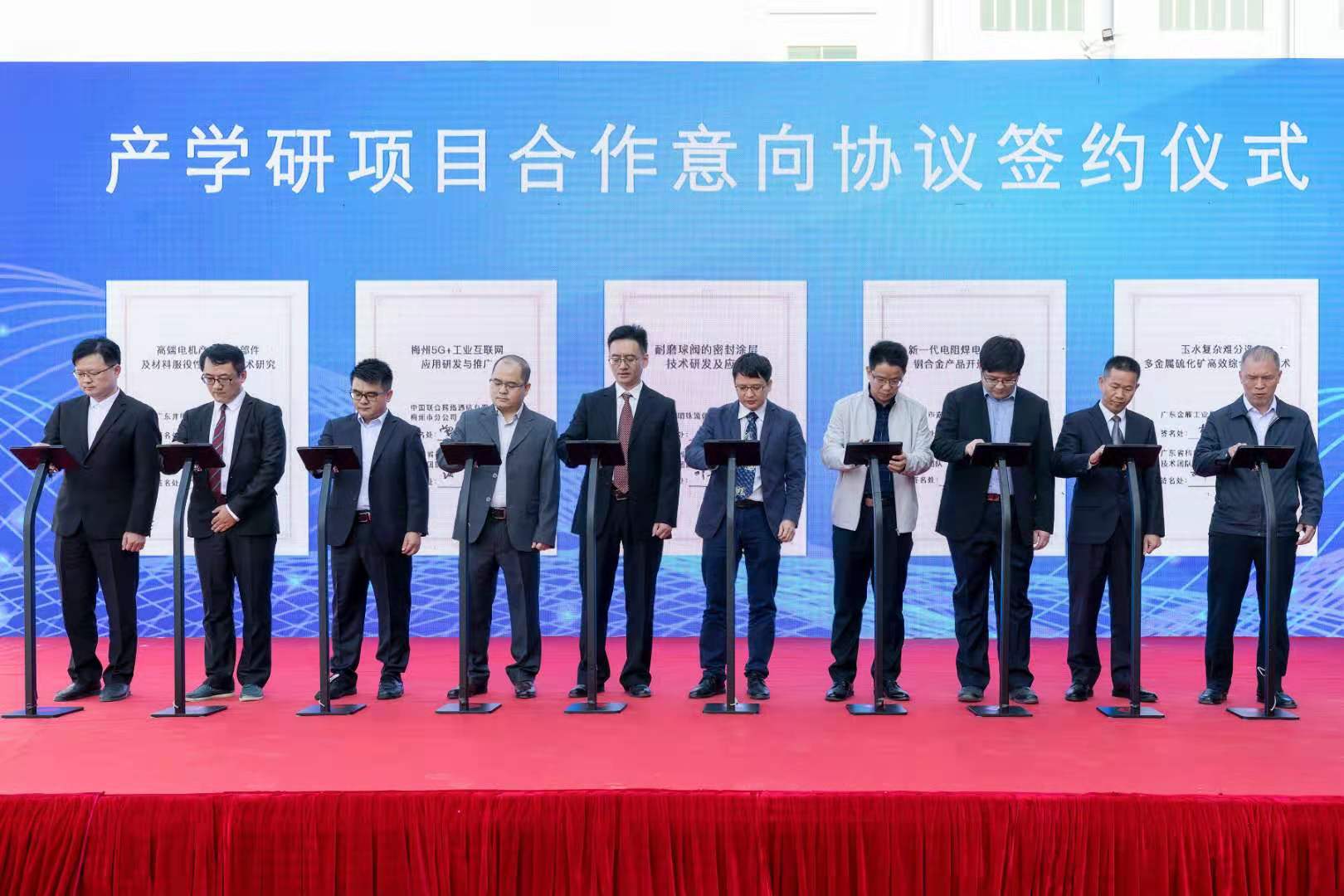 梅州產業技術研究院與6個入孵項目、9個產學研合作項目、7家戰略合作單位簽訂合作協議,助力梅州產業轉型升級和創新驅動發展。