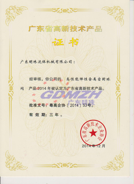 高新技術產品證書