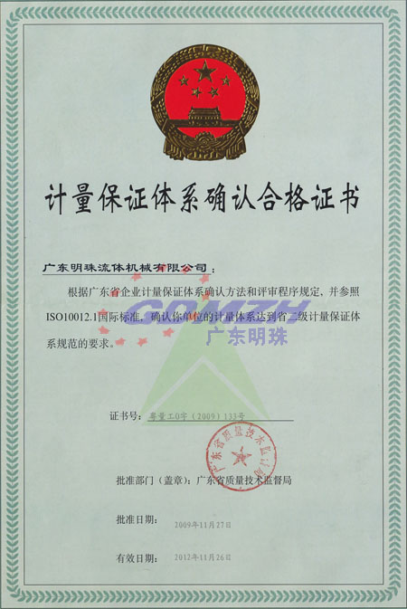 所在位置:首頁 > 質量體系 > > 計量保證體系確認合格證書